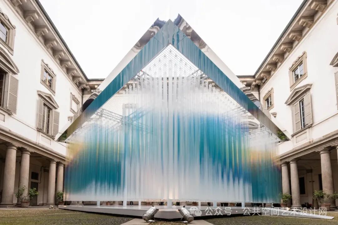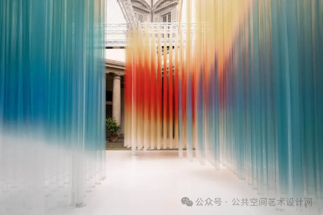 《Straordin aria》是一场专为场地定制的艺术装置,由Ermanno Casoli基金会艺术总监Marcello Smarrelli精心策划,在受到云朵的启发下,将无数个半透明纱管悬挂于装置上方,让这些纱管随风而动,营造出如风般极度轻盈、流动自如的姿态,令人一走入《Straordin aria》便有种难以言喻的超现实感,也引领观众与该艺术装置展开亲密对谈。